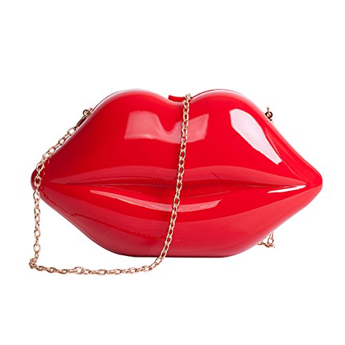 Zarapack Women's Acrylic 3d Sexy Red Lip Evening Handbag Party Clutch Crossbody Shoulder Purse