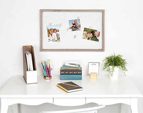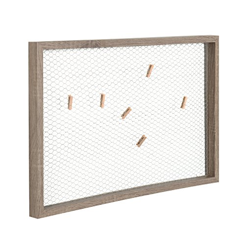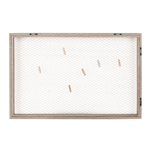 -. Title : DesignOvation Tweden Clip Wood Picture Frame Chicken Wire with Clothespin Clips, 25" x 16.5", Rustic Brown