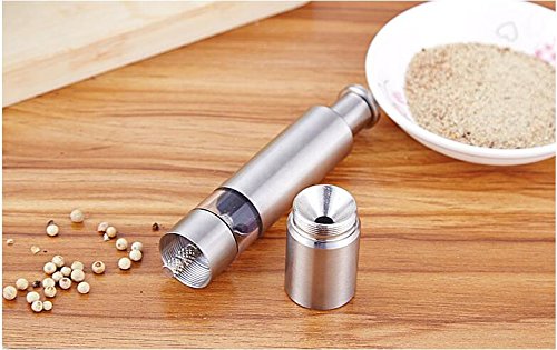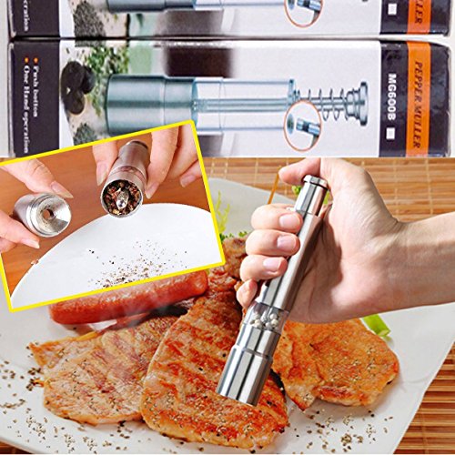 Stainless Steel Thumb Push Salt and Pepper Grinder, One Hand Operated Salt and Pepper Mill