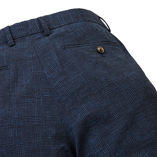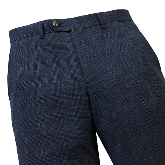 - 내츄럴한 부클 글렌 체크 원단으로 영한 무드의 남성 팬츠.
