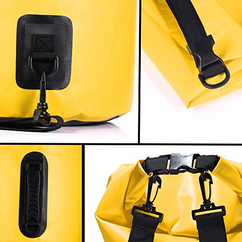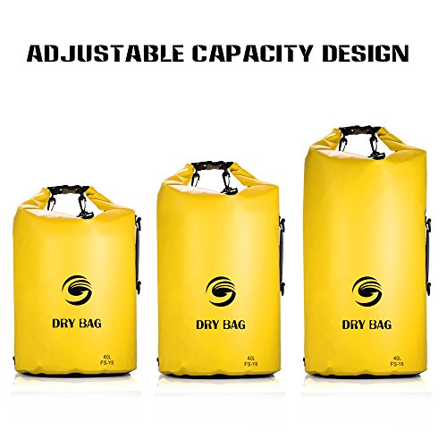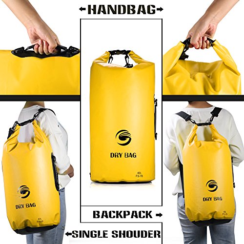-. Feature : PVC素材を採用して、防水性と密封性は非常に優れて、汚れにくて破りにくいです。 / 片双肩掛けや手提げも可能で、ショルダーベルト調節できて、持ち運びに便利です。 / 収納力抜群:40Lの大容量で大きな開口部になっているので荷物の出し入れが簡単です。衣類はもちろん、携帯やカメラなども収納可能です。 / 折り畳みデザインで自分に合わせたサイズに折り畳めて、マリンスポーツ、釣り、海水浴、ハイキング、キャンプなどのアウトドアに最適です。 / 空気をたっぷり入れて密封することで、補助浮動救命用具としても役立ちます(あくまでも補助的)