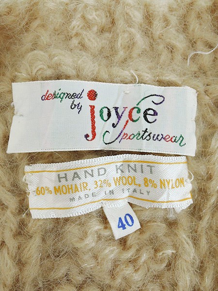 Ladies ブランド カラーベージュ メール便不可 コンディション★★★ 素材モヘア・ウール・ナイロン 表記サイズ40 実寸サイズ 着丈 62 cm 身幅 50 cm 袖丈 72 cm ※ウエスト・ヒップ以外は平置き採寸