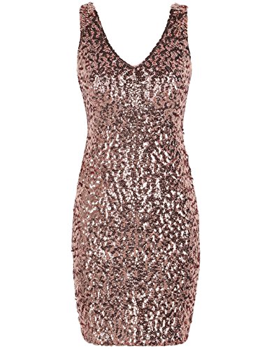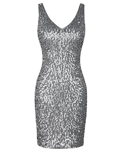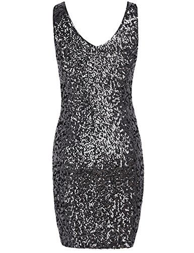 PrettyGuide Women Sexy Deep V Neck Sequin Glitter Bodycon Stretchy Mini Party Dress Black L