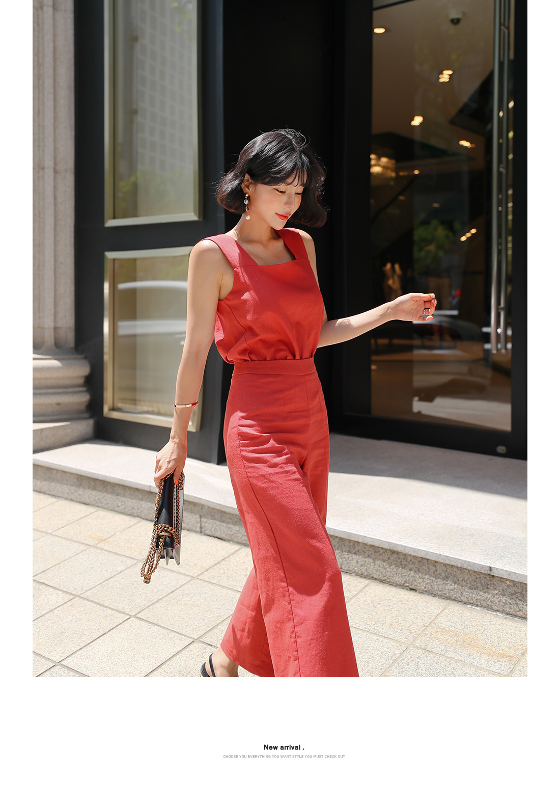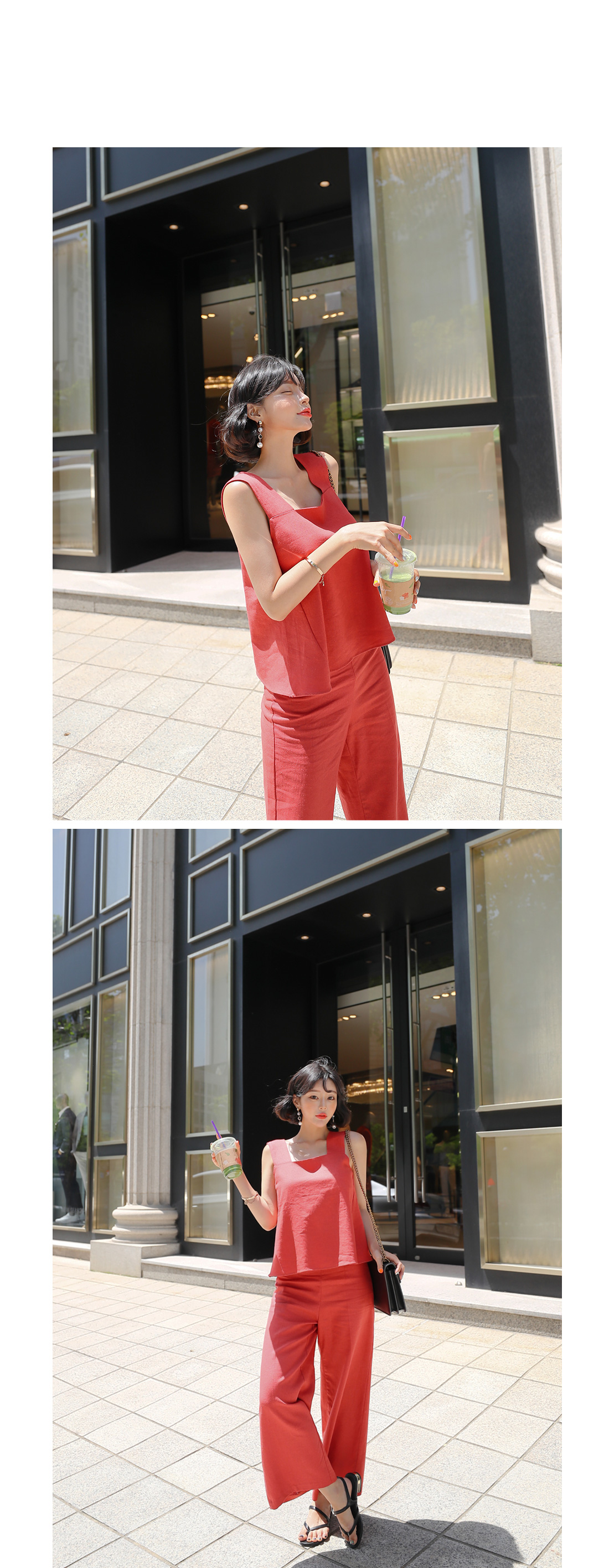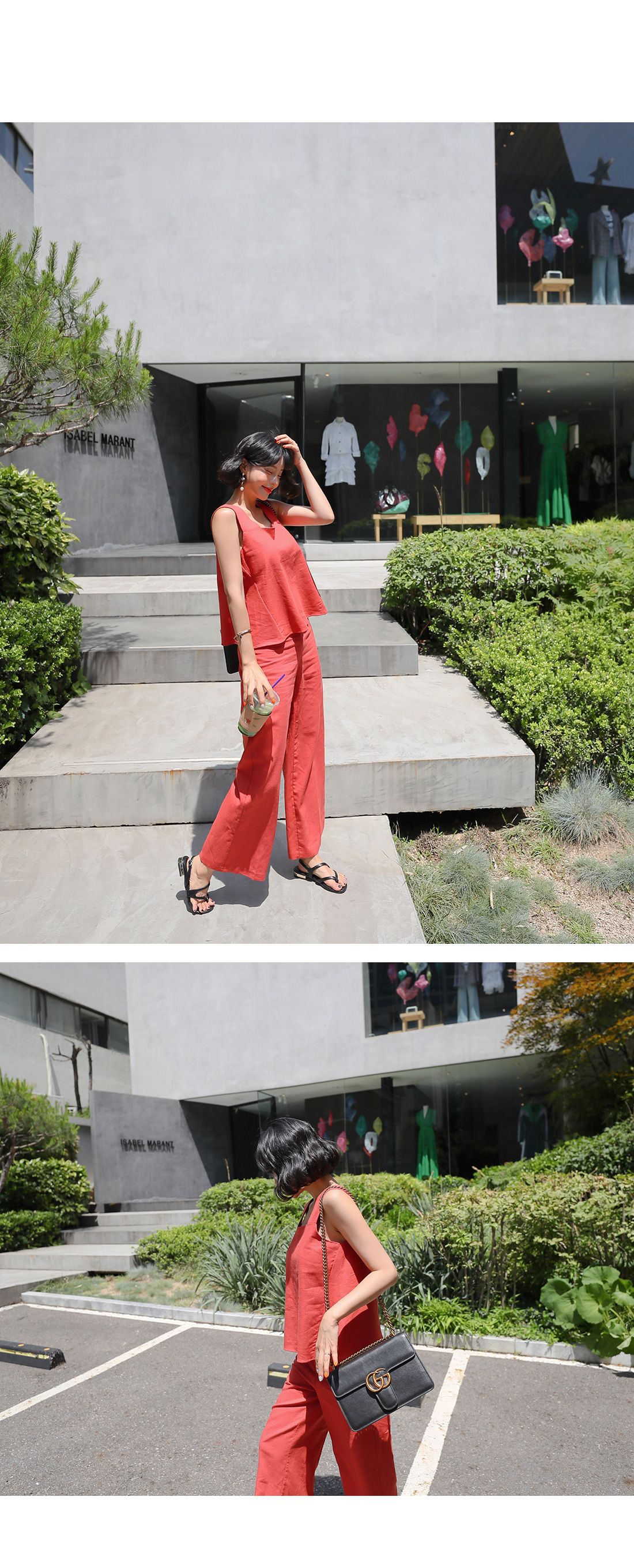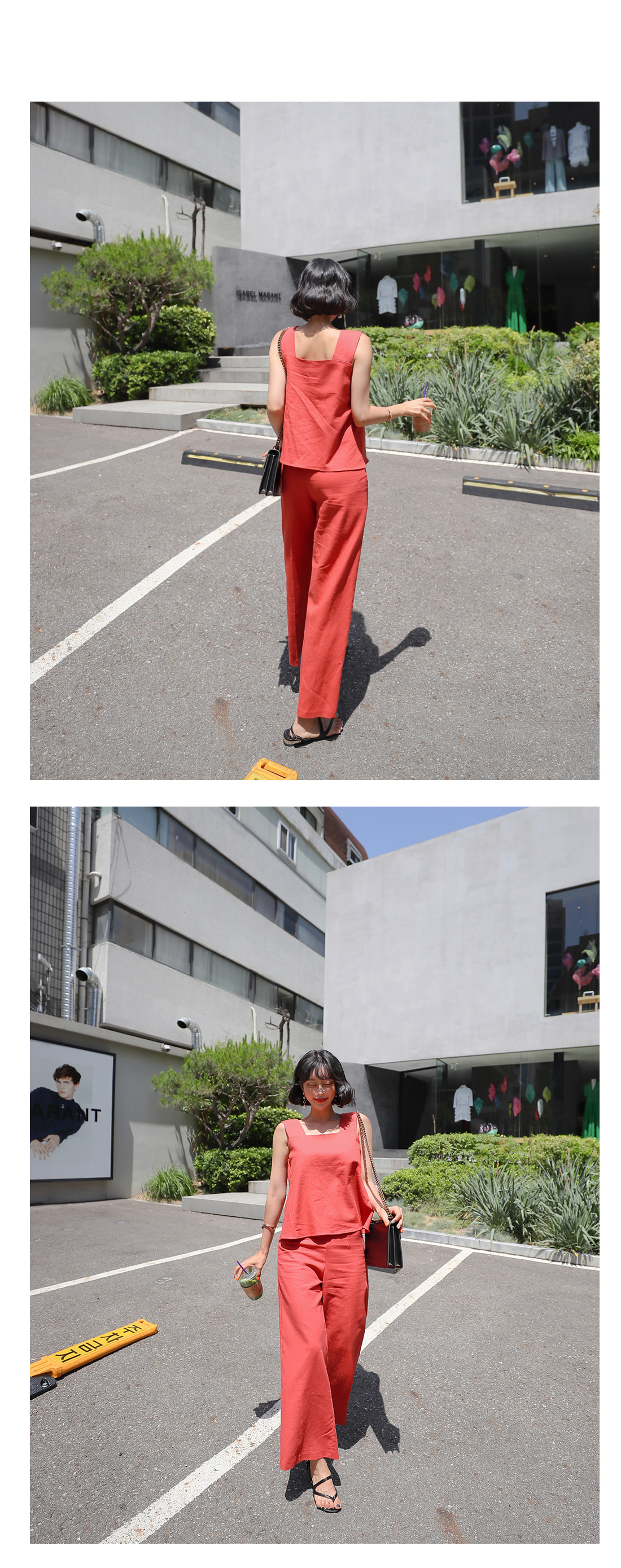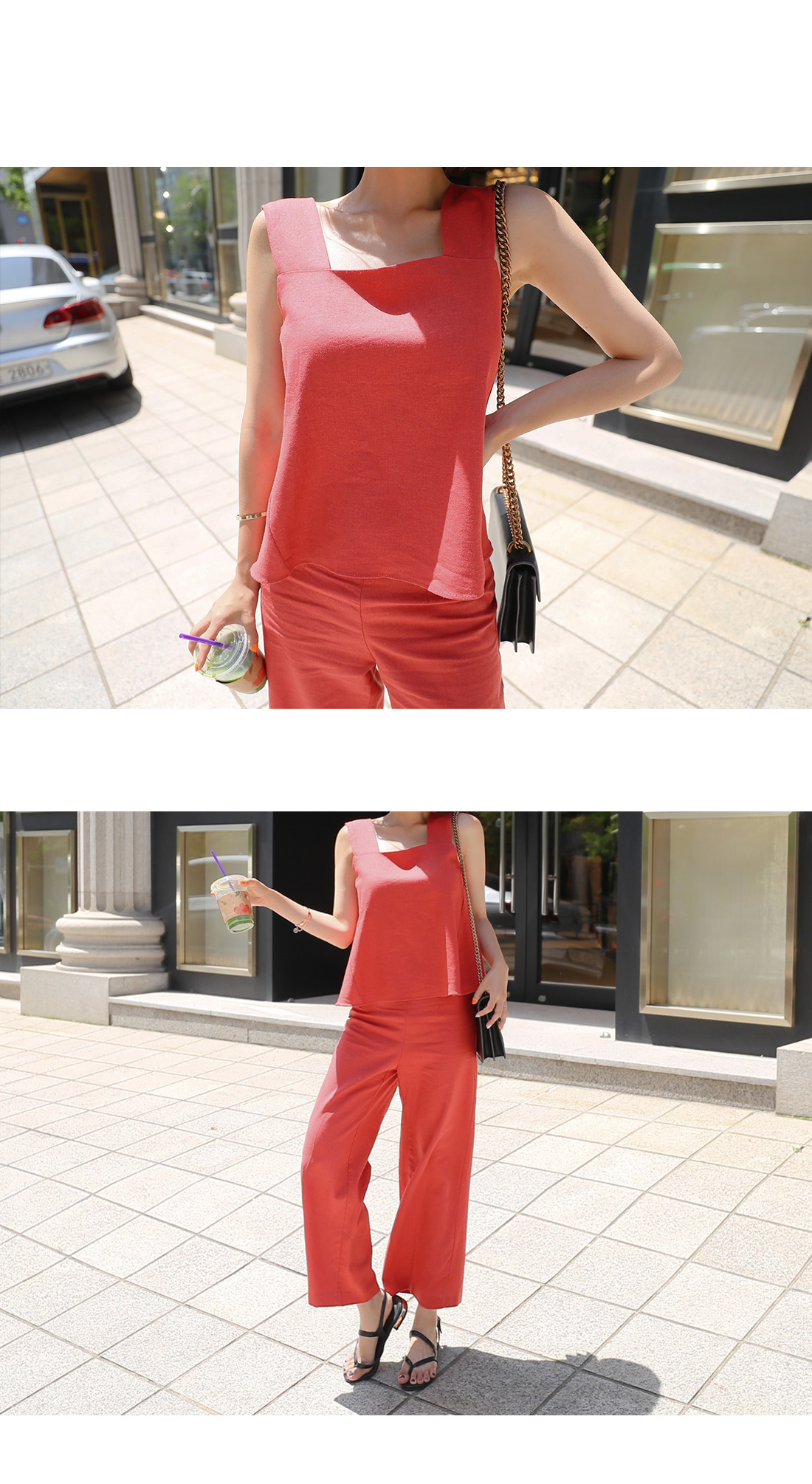 MD COMMENT심플하면서도 세련된 무드의투피스 아이템을 소개합니다.가볍고 시원힌 린넨 소재의나시와 팬츠가 함께 세트로 구성되어코디 걱정없이 입기 좋은 아이템이에요.나시는 굵은 어깨끈으로 안정감있는 착용을 선사해주며팬츠 사이드에 지퍼 디테일로오픈, 클로징을 도와준답니다.심플하고 슬림한 와이드 팬츠 디자인으로 다리 라인을길고 날씬하게 연출해줘요.함께 세트로 착용하거나각각 다른 아이템들과 매치하여 여러가지 분위기로스타일링해도 잘 어울려 활용도가 높아요.컬러는 오렌지, 블랙, 베이지 3 가지로 구성되었답니다.COLOR/SIZE오렌지,블랙,베이지S,MMODEL FITTING오렌지/S