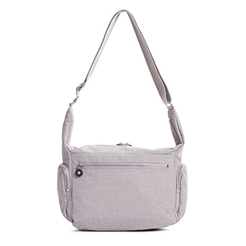 Cross-body bag featuring multiple zip compartments and fuzzy monkey keychain