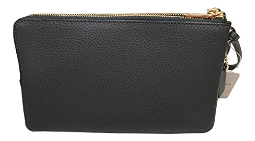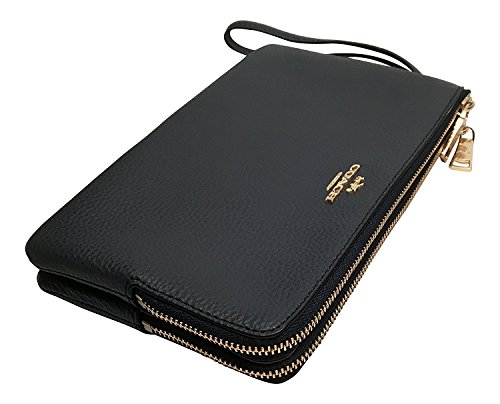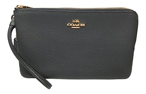 Coach Double Zip Pebble Leather Wristlet Wallet F87587 Midnight Blue