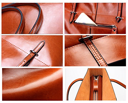 Features: 1.Premium Genuine leather, soft, delicate, durable. The shoulder strap adopt high-grade leather will bear heaviver and comfortable to wear. 2.An independent small wallet, unique and stylish, improving your temperament. 3.Large capacity design, fully achieve the perfect storage design. 4.Rivet reinforcement about the handle, solid and strong bearing capacity. 5.With four rivets in the bottom,durable and wearable, preventing the bottom cortical wear effectively. 6.Suitable for Working, shopping, daily life, traveling, school, party and business, etc. A great gift to your friends and family.