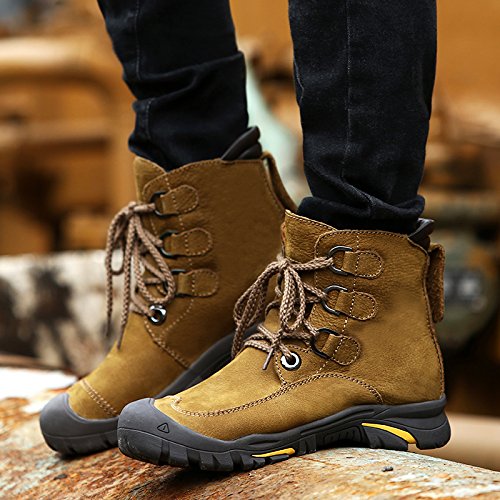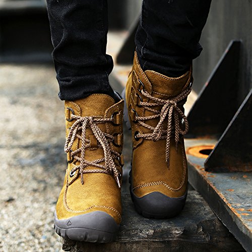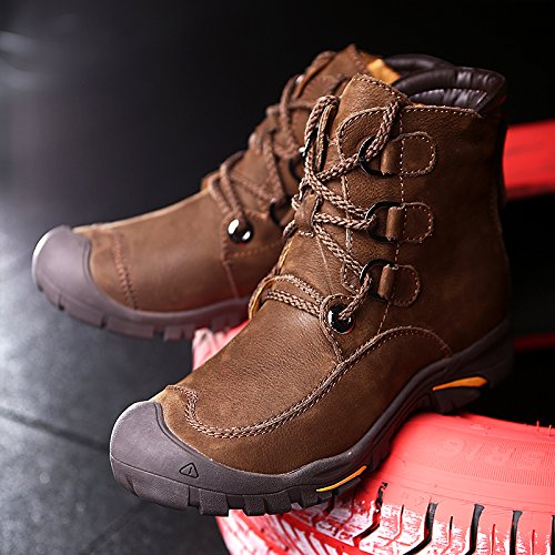 DEKESEN Men's Lace Up Fur Lined Warm Winter Hiking Shoes Boot