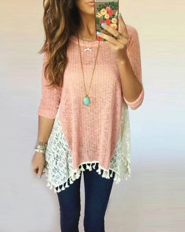 【入荷後営業日2,3日以内出荷予定 通関待ちや不良により出荷遅くなる場合はメールにてご連絡いたします。メール受信設定によっては正常に受信されない場合はございますので、 弊社からのメールを予め受信頂くようご設定くださいませ。】 トップス ニットチュニック ニット 薄ニット レース レディス レディース 春 新作 2018レース切り替えニットチュニック◆サイズ:M着丈60袖丈49胸囲90L着丈61袖丈50胸囲95XL着丈62袖丈51胸囲100◆素材:コットン、ポリエステル