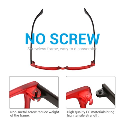 - NO SCREWS LINK AND NOSE PADS:The entire frame has no screws,reduce the weight of the glasses,the glasses leg is very easy to remove and install.high quality nose pads based the ergonomic theory,it reduce the pressure on your nose.