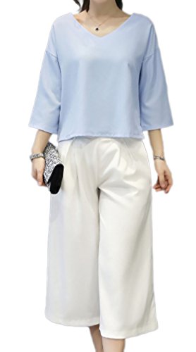 -. Feature : とろみ感のあるシフォン素材のトップスとパンツのセットアップです。 / トップスは顔色を明るく見せてくれるライトブルー。シンプルなデザインが別アイテムとも相性抜群です。 / ボトムはバックゴム入りで動きやすく、ワイドなラインが今年らしい。 様々なシーンで活躍してくれるアイテムです。 / メイン素材:ポリエステル / サイズ展開:M/L/XL 少し小さめの仕立てになっていますので、ゆったりと着る場合は2サイズ大きめをお勧めします。詳しくは商品説明をご覧ください。