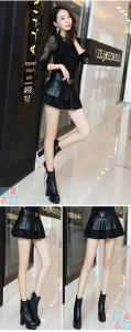 甘めなフレアスカートは素材でカッコよく^^