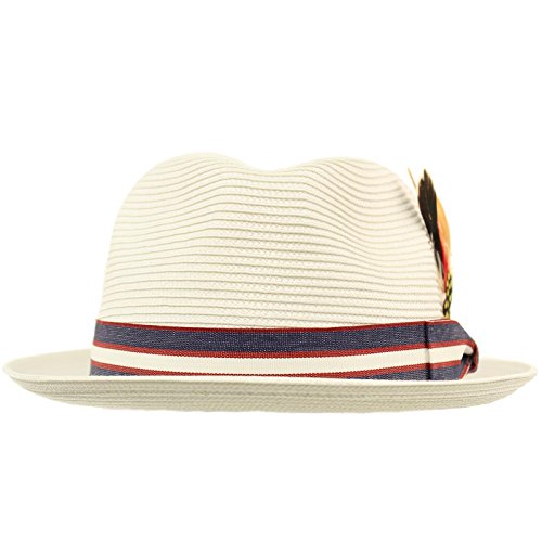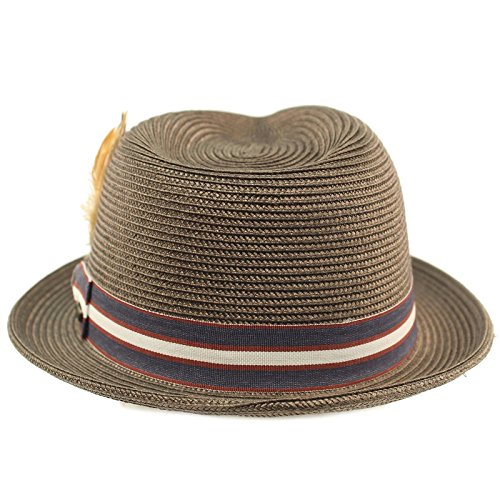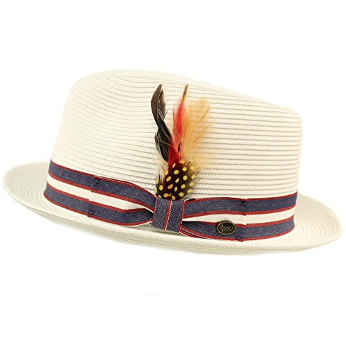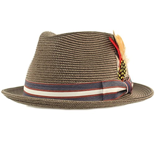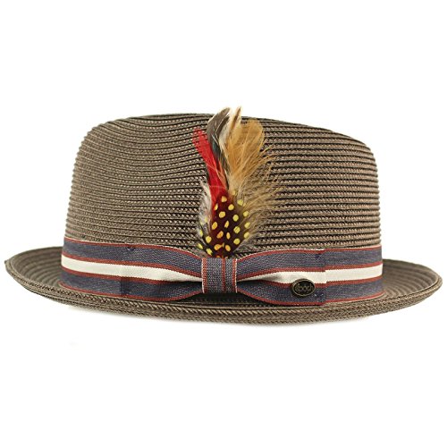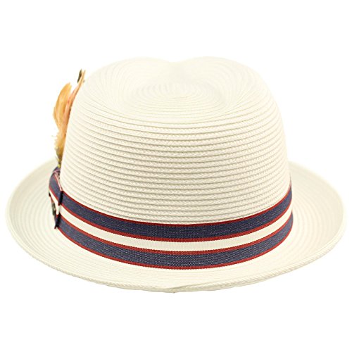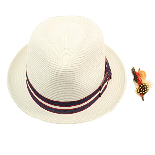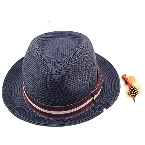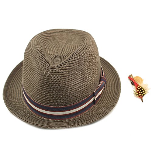 Men's Summer Cool Light Weight Removable Feather Soft Crushable Body Upturn Curled Brim Pleated Striped Black Ribbon Bow Hatband Retro Derby Fedora Trilby Cap Hat Spring Summer Light Weight Removable Feather Premium Soft Cruahable Body, Curled Upturn Brim Resort Wear Sun Hat with interior sweat band, no lining for cool comfort. Grosgrain striped pattern ribbon bow hatband. Redesigned for cool fit. Keep the harmful UV rays out of your face. Perfect for hot and warm weather outdoor activities, will keep you cool. Will compliment any outfit. How about for vacation or for resort wear. 0 |