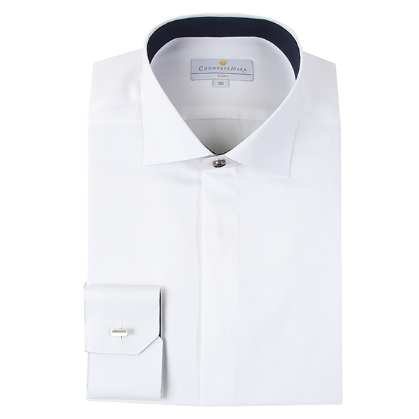 히든플라켓 디자인으로 깔끔한 디테일을 자랑하는 화이트 솔리드 슬림 긴팔셔츠 상품입니다