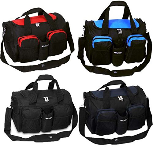 -. Brand : Bagiva -. Department : unisex-adult -. Feature : Available Colors: Red, Royal, Navy, Black, A stylish sports duffel bag with a special side pocket for shoes or wet gear. / Extra spacious main compartment with zippered clamshell opening. Two front zippered pouches. / Side mesh pocket. Bottle holder (squeeze bottle optional). Adjustable padded shoulder strap. / Velcro close handles. Material 600D Polyester. Dimension 18 x 11.5 x 10.5 in / Capacity 1950 in3 / 32 L, Weight 2 lbs 8 oz / 1.1 kg, Everest Design -. ProductGroup : Apparel -. ProductTypeName : LAGE -. Title : Bagiva Athletic Duffle With Shoe Pocket Travel Gear Lage Sports Gym Bag