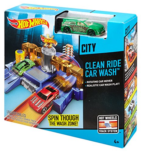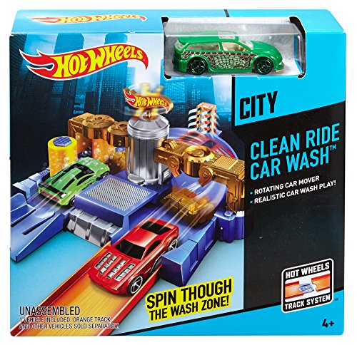 -. Binding : Toy -. Brand : Hot Wheels -. EAN : 0887961044911 -. Feature : Vehicles can drive in for a wash, rinse and dry / Twist the Hot Wheels logo to activate the fun / Connects to other Hot Wheels track sets to build the world of play / Includes one Hot Wheels vehicle so kids can experience the fun right / A great gift that any boy is sure to love -. IsAdultProduct : 0 -. ItemPartNumber : CDL85 -. Label : Mattel -. Manufacturer : Mattel -. Model : CDL85 -. MPN : CDL85 -. PackageQuantity : 1 -. PartNumber : CDL85 -. ProductGroup : Toy -. ProductTypeName : TOYS_AND_GAMES -. Publisher : Mattel -. Studio : Mattel -. Title : Hot Wheels Clean Ride Car Wash Playset -. UPC : 887961044911 -. Warranty : 1 year warranty against manufacturer defects