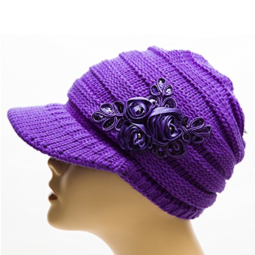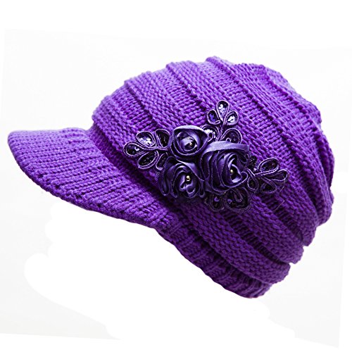 -. Binding : Apparel -. Brand : CITY -. Color : Purple -. Department : womens -. EAN : 0665474036360 -. Feature : new -. ProductGroup : Apparel -. ProductTypeName : HAT -. Size : one size -. Title : CITY New Women's Cable Knit Visor Hat with Flower Accent Purple Color -. UPC : 665474036360