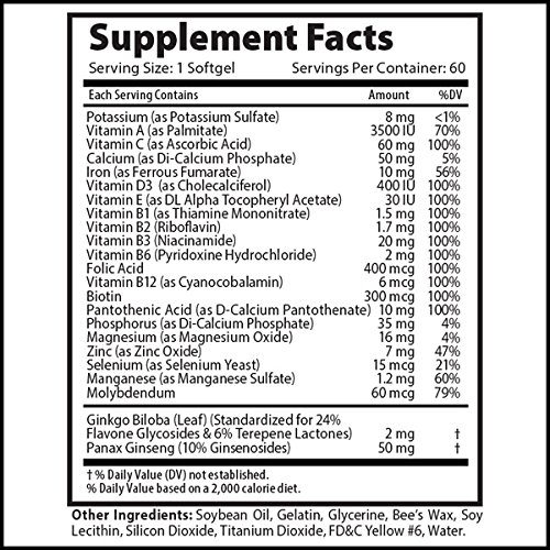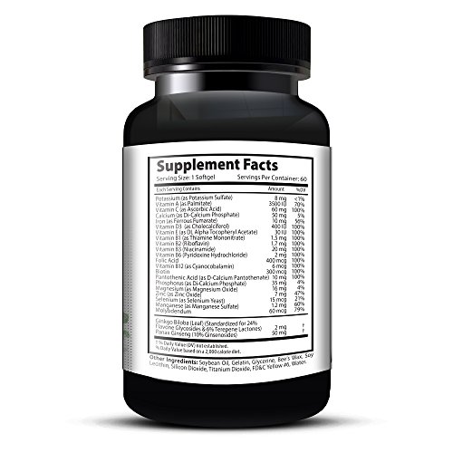 -. Title : Ginseng & Ginkgo Daily Essential Multivitamin All Natural Supplement with 21 Essential Vitamins, Minerals, & Herbal Extracts (60 Servings)