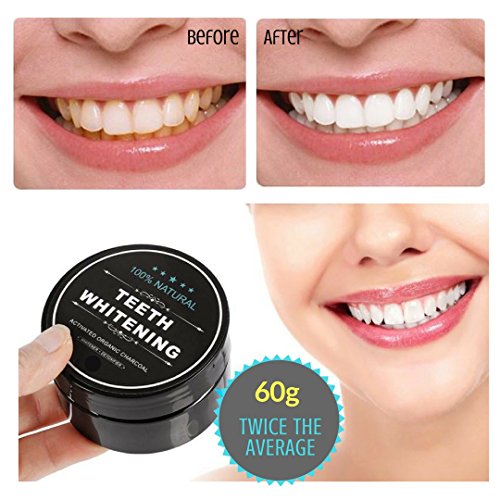 TeeJay Home's 100% All Natural Activated Bamboo & Coconut Charcoal Teeth Whitening Powder is an organic, vegan, non-synthetic teeth whitening system with no chemicals added. Studies have shown charcoal powder to be more effective than strips, gels or traditional teeth whitening kits. Our activated charcoal removes stains and discoloration from the surface of your teeth to significantly whiten and brighten your smile. No additives or preservatives. At TeeJay Home our mission is finding chemical free alternatives for products people use in there everyday lives. Now you can have a brighter smile without all the pain and discomfort associated with more traditional teeth bleaching kits. Activated charcoal is used today and has been used throughout the centuries to treat people who have accidentally ingested poison - with its porous surface, it attaches to toxins and impurities in the body to draw them out. It works in just the same way on plaque, tannins and stains on teeth - safely and efficiently lifting these off! This polish is made with premium finely ground food grade activated charcoal, ideal for dental use and non-abrasive, organic peppermint is used to soothe, fight bacteria, reduce inflammation and add freshness. DIRECTIONS & RECOMMENDED USE: Dab a moist toothbrush in the powder. Brush teeth for 1-2 minutes, followed by brushing with your regular toothpaste. as often as twice a day or use when you feel a boost to your smile is in need. As the process can be a bit on the messy side we recommend brushing in the shower. No matter the frequency or location we are sure you will be pleased with the results and did I mention if you are not happy with our product for any reason we offer 100% MONEY BACK GUARANTEE!Feature
