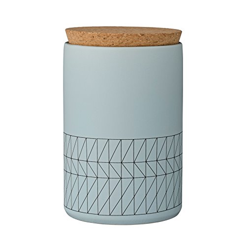 Bloomingville Ceramic Carina Jar with Cork Lid, Sky Blue/Black