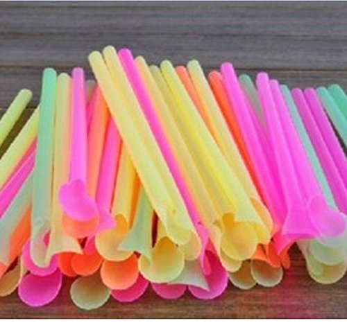 -. Title : 50 pcs multicolour spoon straw Disposable Spoon Plastic Drinking Straw Party Ice Smoothies Milkshake Bar Snow Cone Candy Spoon