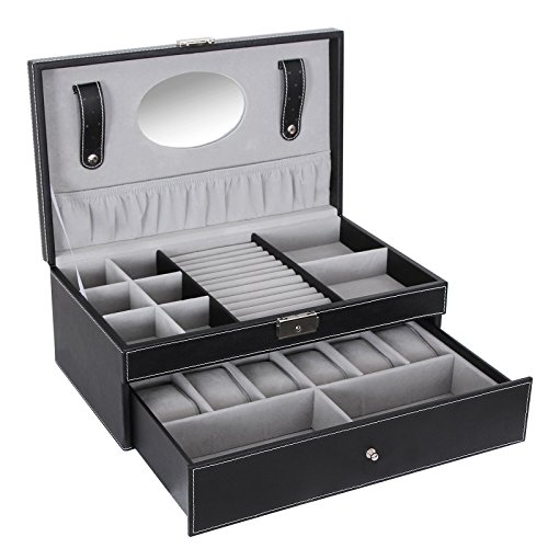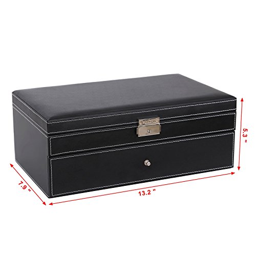 SONGMICS Black Jewelry Box 6 Watch Organizer Storage Case with Lock and Mirror UJWB11B