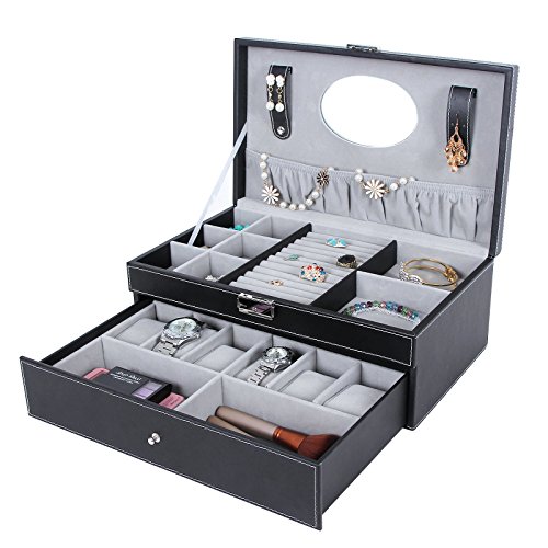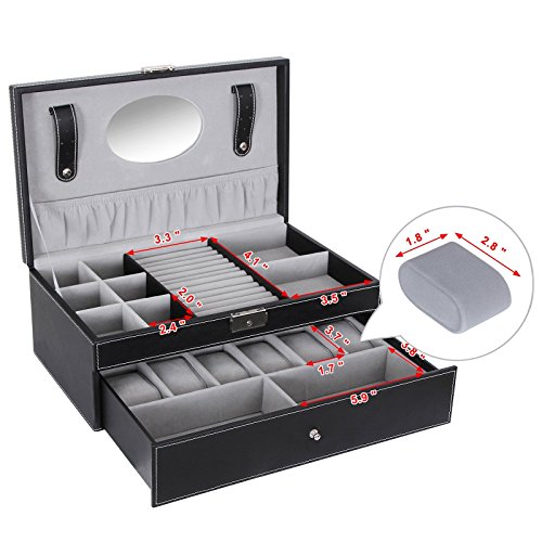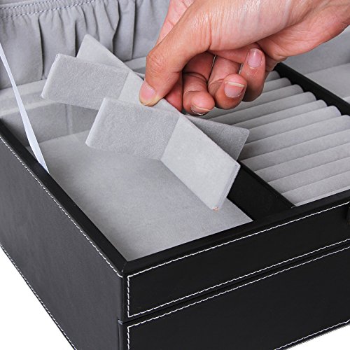 TOP-NOTCH CRAFT: Made of quality black faux leather and soft gray velvet, this jewelry box is superexcellent to protect your beloved jewelry from scratch and damage