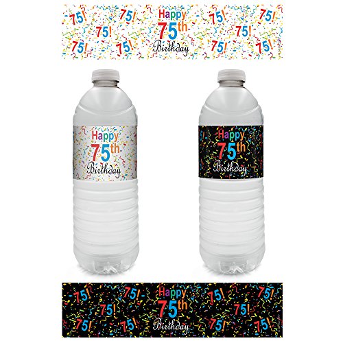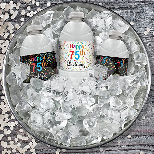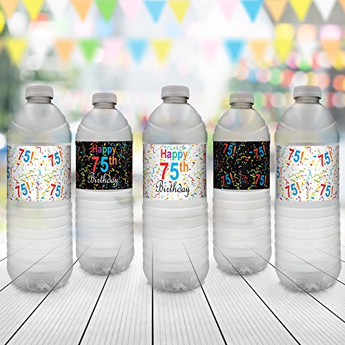 75th Birthday Party Water Bottle Labels - Multi-Colored (20 Count)