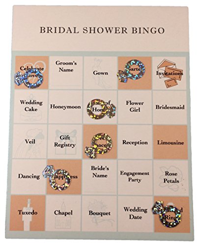 TWENTY-FOUR (24) BINGO GAME CARDS WITH CALL OUT SQUARES. Simply separate the call out phrases printed and place them in a bowl and you are good to go. The wedding shower guest that covers five squares in a row is the Bingo Winner!