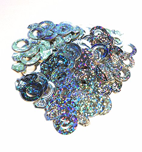 Bridal Shower Party Game Set - Bingo - Engagement Diamond Ring Shaped Bingo Chips that Doubles as Holograhic Wedding Table Confetti - Bingo Cards for 24 Guests