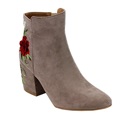 -. Title : QUPID EJ10 Women's Floral Embroidered Wrapped Chunky Heel Ankle Booties
