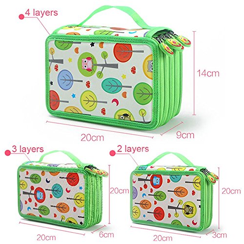 2 3 4 Layers 72 52 32 Holders Pencil Case Kids Cute Owl Dazzle Colour Cardboard PencilCase School Stationery Box Children Gift (3Layers, Pink)
