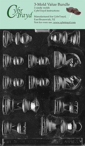 CybrTrayd M033-3BUNDLE Chess Pieces Chocolate Candy Mold with Exclusive Copyrighted Chocolate Molding Instructions