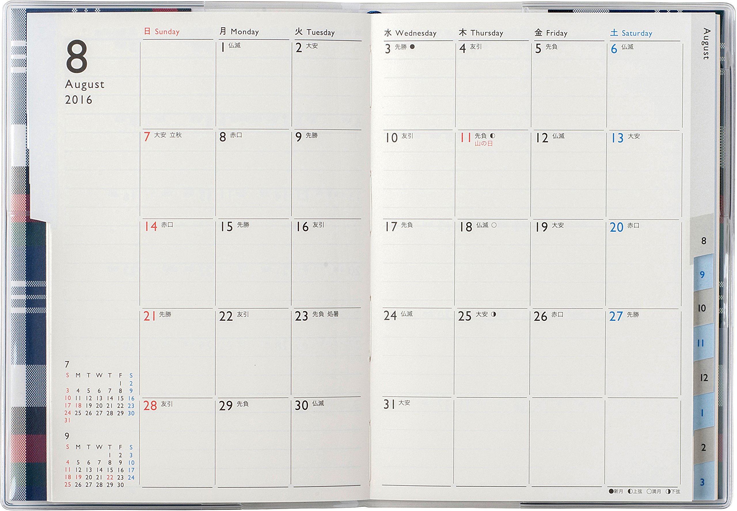 There is a memo page at the end of the quarter and the end of the book that the calendar starting with Sunday is stated in a spread. Extra appendix pages are rarely included, and there are few parts that I do not use. If it is a purpose to manage my schedule at the daily, I think that there is no other choice.