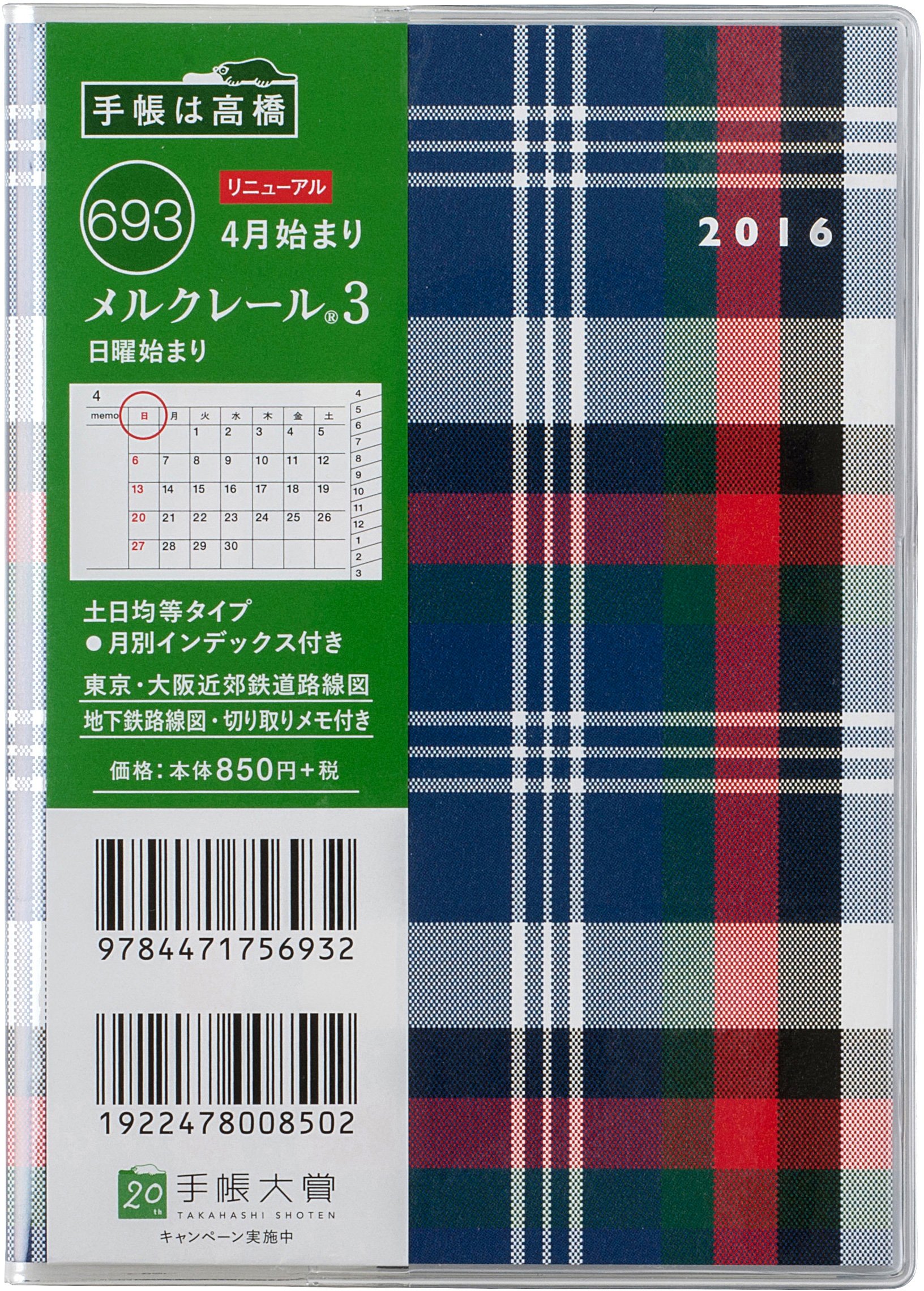 Until now I have used the same type as No. 732 of the Takahashi notebook series, but since I lost it in June, I did not handle the notebook anywhere anymore, where I was in trouble, the last request is I found No. 732 here. I found this notebook that was on the same line at the click of the order, on the same Sunday A6 version of Takahashi, attracted by a cute check pattern and clicked on. One month is understood at a glance, there is a memo page for each month, usability is good, but one point of dissatisfaction. That the daily notes section is getting smaller because of the space on the left and right heading of the moon. It's a bit small to write a job schedule. On that side it was good that I used it before ... and so on. We will revert to the previous type from the next.