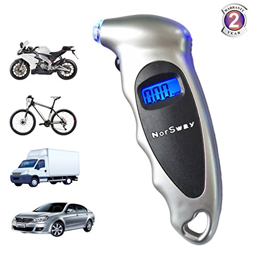 Pressure range: 0-100 PSI, Resolution : 0.5 PSI/0.05 BAR , Precision: ≤+/-1.5 psi , Dimension: 5.5 x 2.2 x 1.05 inch. Passenger car tire pressure standard is 2.3-2.5 bar.The maximum not more than 3.0 bar, the minimum not less than 2.1 bar. Lorry car tire pressure standard is 5~7 kg/cm². Tire pressure is too low, will cause the tire sidewall to directly wear the ground, too fast, or too long driving, result in sidewall rupture, and even puncture