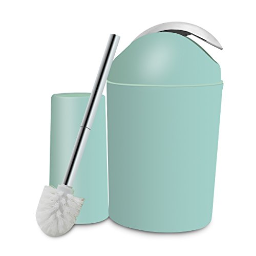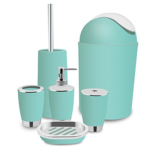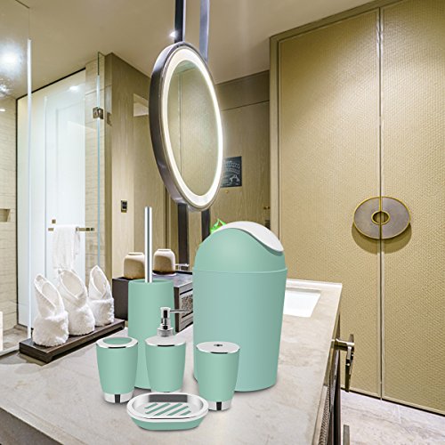 Bathroom Accessory Set, Christmas 6 Piece Luxury Bath Accessories Gifts by Rgusen, Lotion Dispenser, Toothbrush Holder, Bathroom Tumblers, Soap Dish, Trash Can, Toilet Brush Set-Plastic (Mint Green)