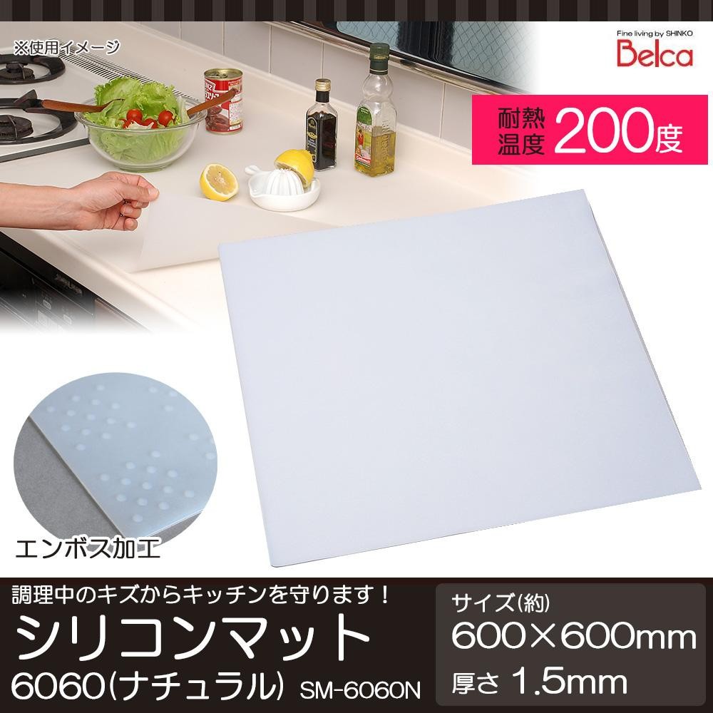 カウンターなどを調理によるキズや熱からしっかりガード!!使う場所に合わせてはさみなどで簡単にカットしてお使い頂けます♪ 製造国:中国 素材・材質:シリコンゴム 商品サイズ:約600×600×厚さ1.5mm 仕様:耐熱温度:200度 ※サプライヤー直送品 ご注文後2~3営業日後の出荷となります【商品名】Belca(ベルカ) シリコンマット6060(ナチュラル) SM-6060N
