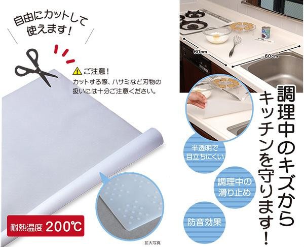 カウンターなどを調理によるキズや熱からしっかりガード!!使う場所に合わせてはさみなどで簡単にカットしてお使い頂けます♪