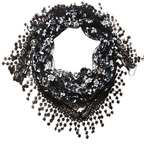 1PC Fashion Lace Tassel Sheer Burntout Floral Print Triangle Mantilla Scarf Shawl (without retail package) 0