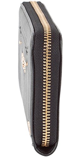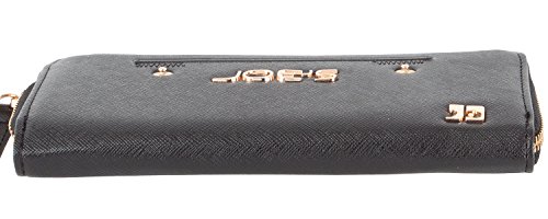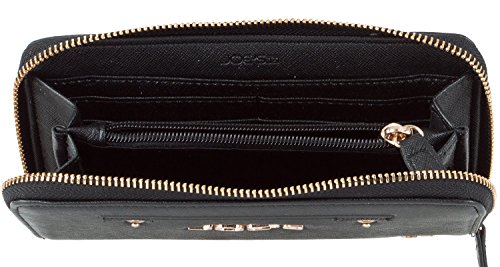 Carry your cash and cards in this classic Joe's Jeans Dara Zip Around Wallet. Exterior Features Saffiano Vegan leather, Snap Stud, Stitch Detail and Joe's Logo, Zip around closure, Interior features 8 credit card slots, 2 full length slip currency pockets, and a Center zippered coin pocket. This wallet offers storage for your currency and exceptional organization in sleek styling. Joe's Jeans is a casual chic lifestyle brand known for modernized timeless styles from premium denim and collection pieces to contemporary accessories and footwear.Feature