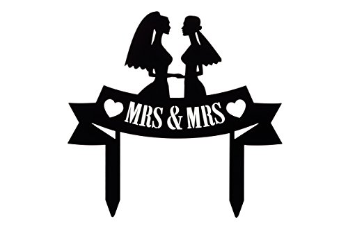 Lesbian Mrs&Mrs Same Sex Wedding Cake Toppers - Female Gay Cake Topper Mrs and Mrs with Hearts