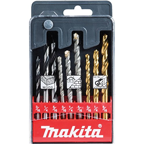 - Makita's convenient, Premium 9-Piece, Long-Lasting, Heavy-Duty Hammer Drill Pilot Bit Set, with specialized 3 MASONRY + 3 WOOD + 3 METAL Bits with the most commonly used household hole sizes for each application, preparing the way for EASY & RELIABLE Screwing, Anchoring and Fastening into each application | Engineered in Japan for optimal use with Makita 3/8" & 1/2" Chuck Hammer Drills while also fully compatible with All 3/8" & 1/2" Chuck Hammer Drills