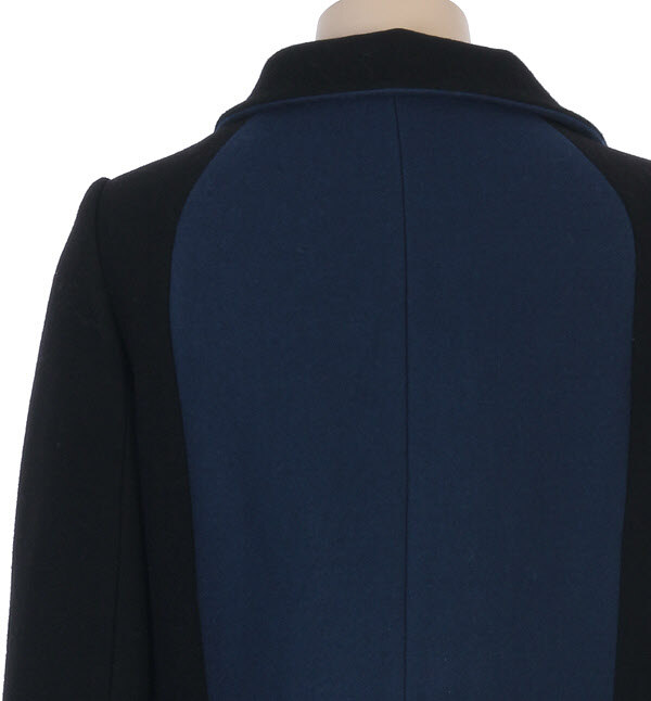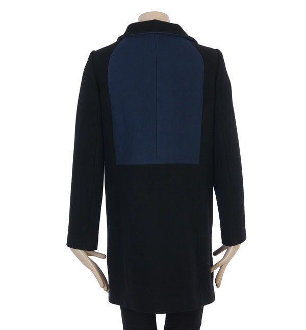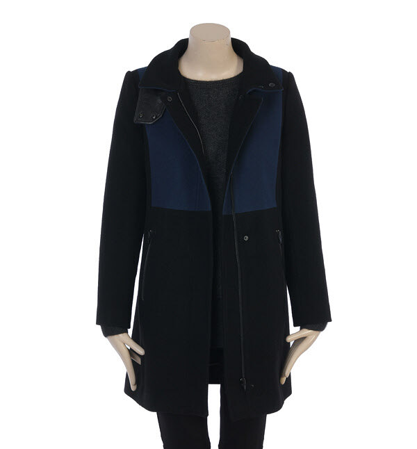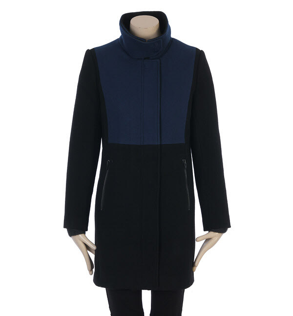 SISLEY, 배색장식과 레이어 카라넥이 어우러져 심플하면서도 포멀하고 고급스러운 멋을 자아내는 모직 코트입니다