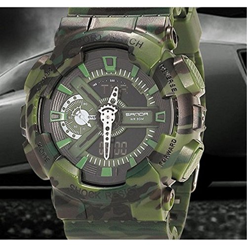 大人気迷彩柄のダイバーズウォッチです!LEDライト付きのデジタル表示でオンとオフどちらでも使用できます!アウトドアにも対応した多機能デジタルウォッチ。防水機能(30m防水)もしっかりしています!