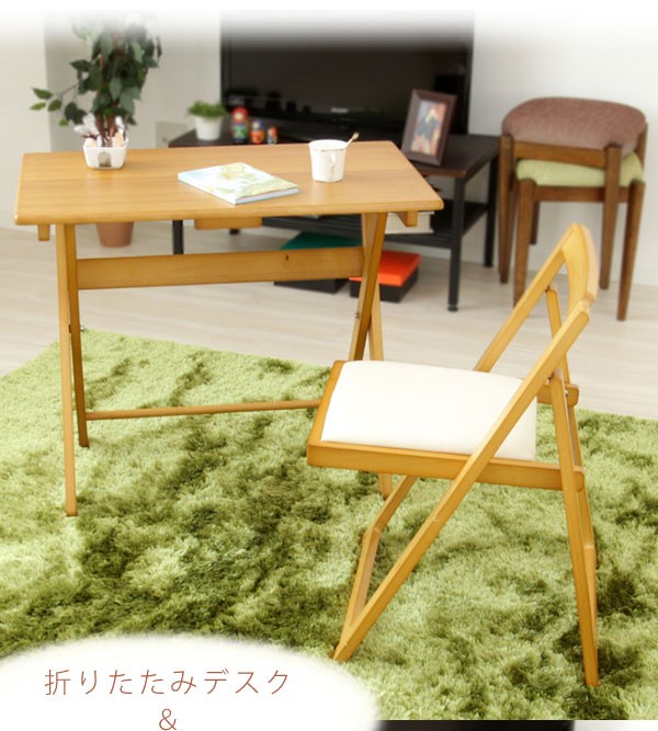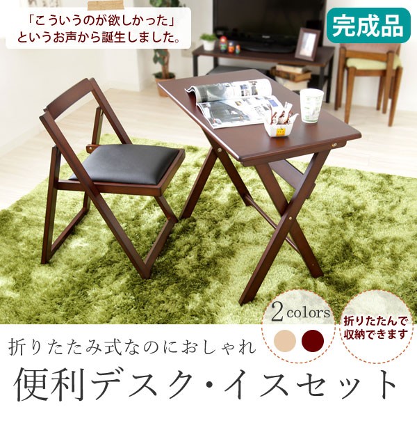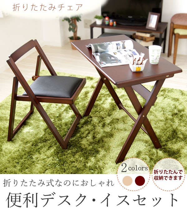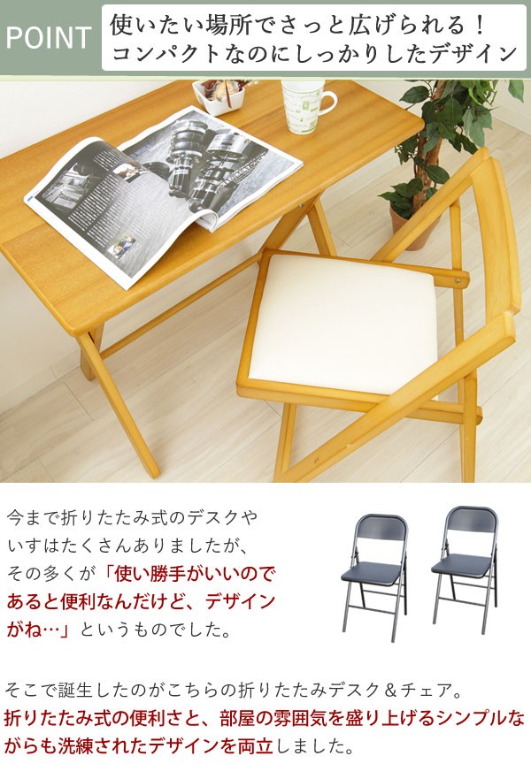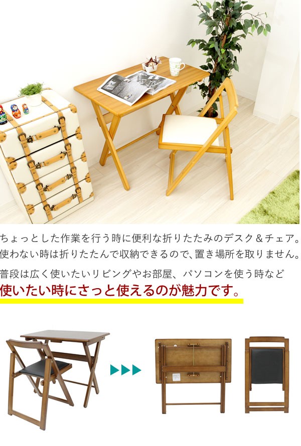 ・ちょっとした作業に活躍する折畳み式のデスク&チェアです。使用しない時は畳んで収納できますので場所をとりません。