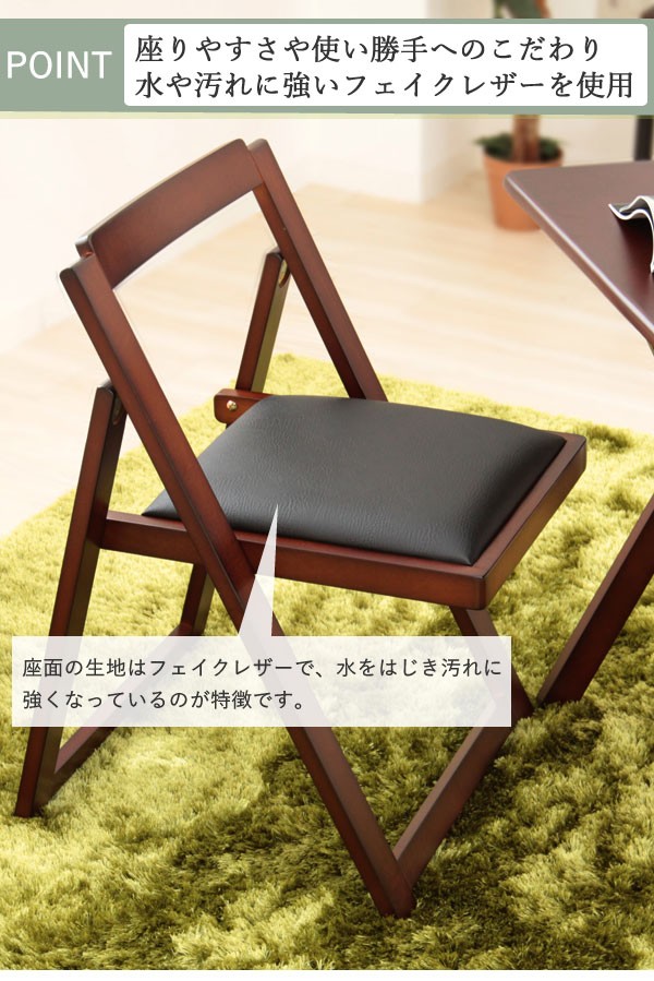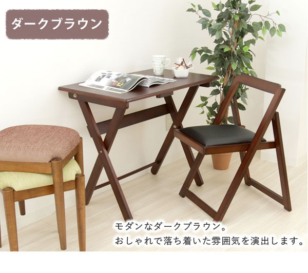 【商品名】折りたたみ式デスク・チェアセット 木製 椅子座面:合成皮革(合皮) ダークブラウン 【完成品】