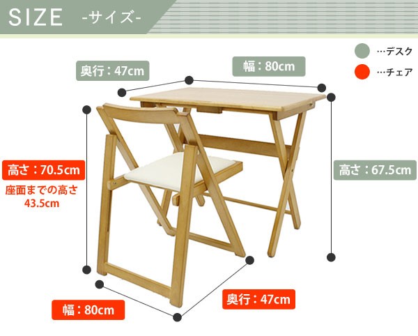 【商品本体サイズ】W80×D47×H67.5cm(デスク)W45×D52.5×H70.5cm(チェア)