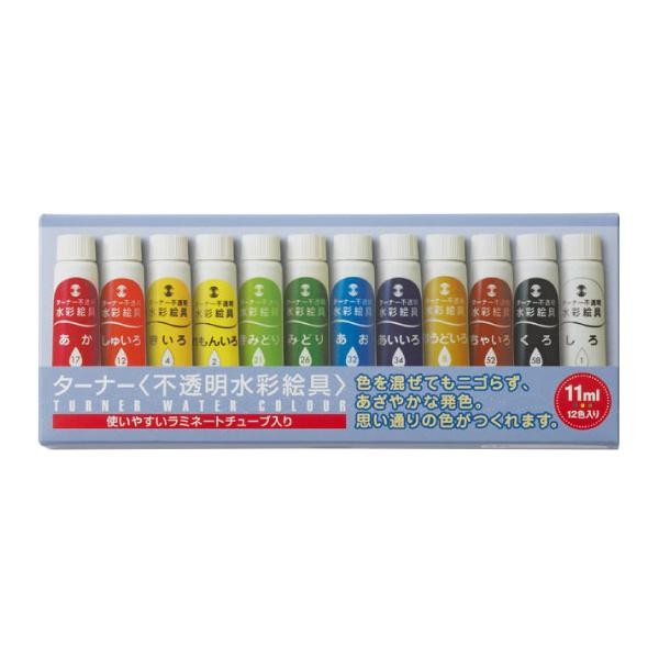 | 小学校低学年に最適な、不透明水彩絵具12色セット。 |
