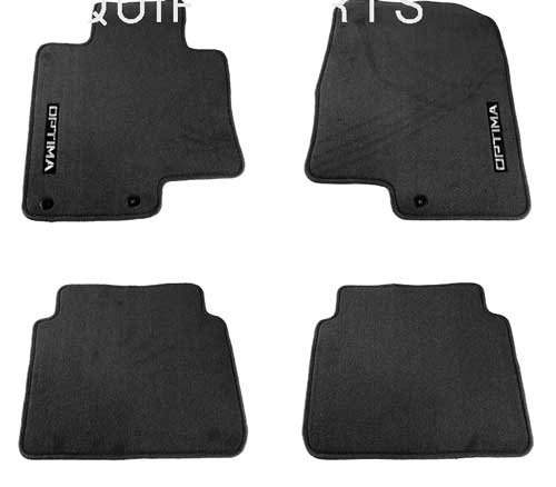 -. Binding : Automotive -. Brand : Kia -. Color : Black -. Department : unisex-adult -. Feature : Fits: 2011-2013 Kia Optima / Durable, custom fitted / Contoured to match body styling with a factory fit look / Guaranteed against poor workmanship and material defects / Add value and style; helps protect your resale value -. Label : Kia -. Manufacturer : Kia -. ManufacturerPartsWarrantyDescription : Parts -. Model : 2TF14-AC100VA -. MPN : 2TF14-AC100VA -. PackageQuantity : 1 -. PartNumber : 2TF14-AC100VA -. ProductGroup : Automotive Parts and Accessories -. ProductTypeName : AUTO_ACCESSORY -. Publisher : Kia -. ReleaseDate : 2013-04-15 -. Studio : Kia -. Title : Genuine Kia Accessories 2TF14-AC100VA Black 2-Post Front and Rear Carpet Floor Mat for Select Optima Models